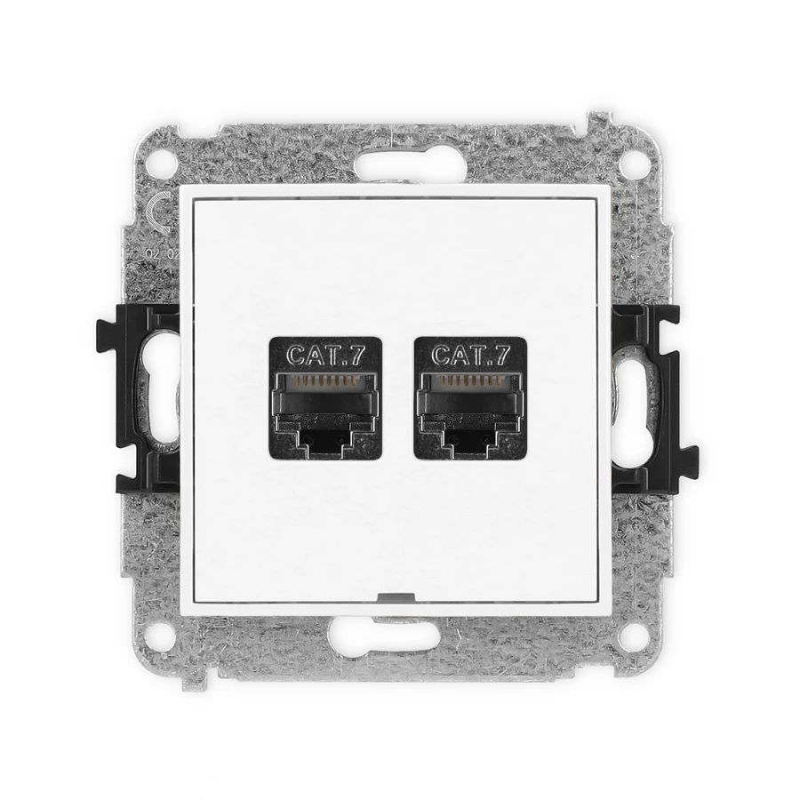 MINI Mechanizm gniazda komputerowego podwójnego 2xRJ45, kat. 7, ekranowane, 8-stykowy, bez pola opisowego biały mat 25MGKBO-10