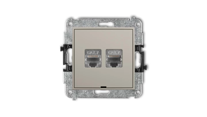 MINI Mechanizm gniazda komputerowego podwójnego 2xRJ45, kat. 7, ekranowany, 8-stykowy, bez pola opisowego taupe 60MGKBO-10
