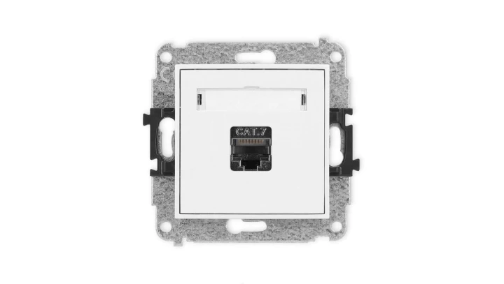MINI Mechanizm gniazda komputerowego pojedynczego 1xRJ45, kat. 7, ekranowane, 8-stykowy biały mat 25MGK-9