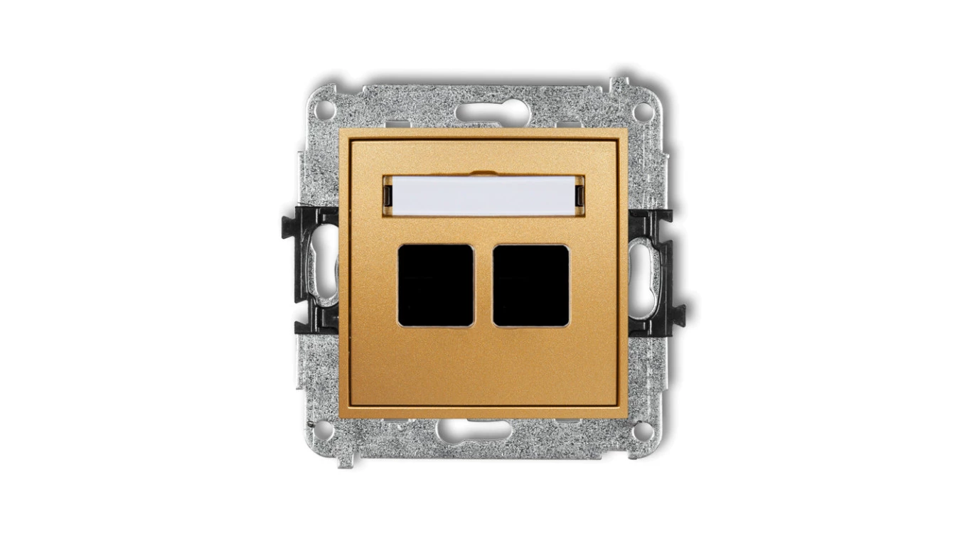 MINI Mechanizm gniazda multimedialnego podwójnego bez modułu (standard Keystone) złoty 29MGM-2P