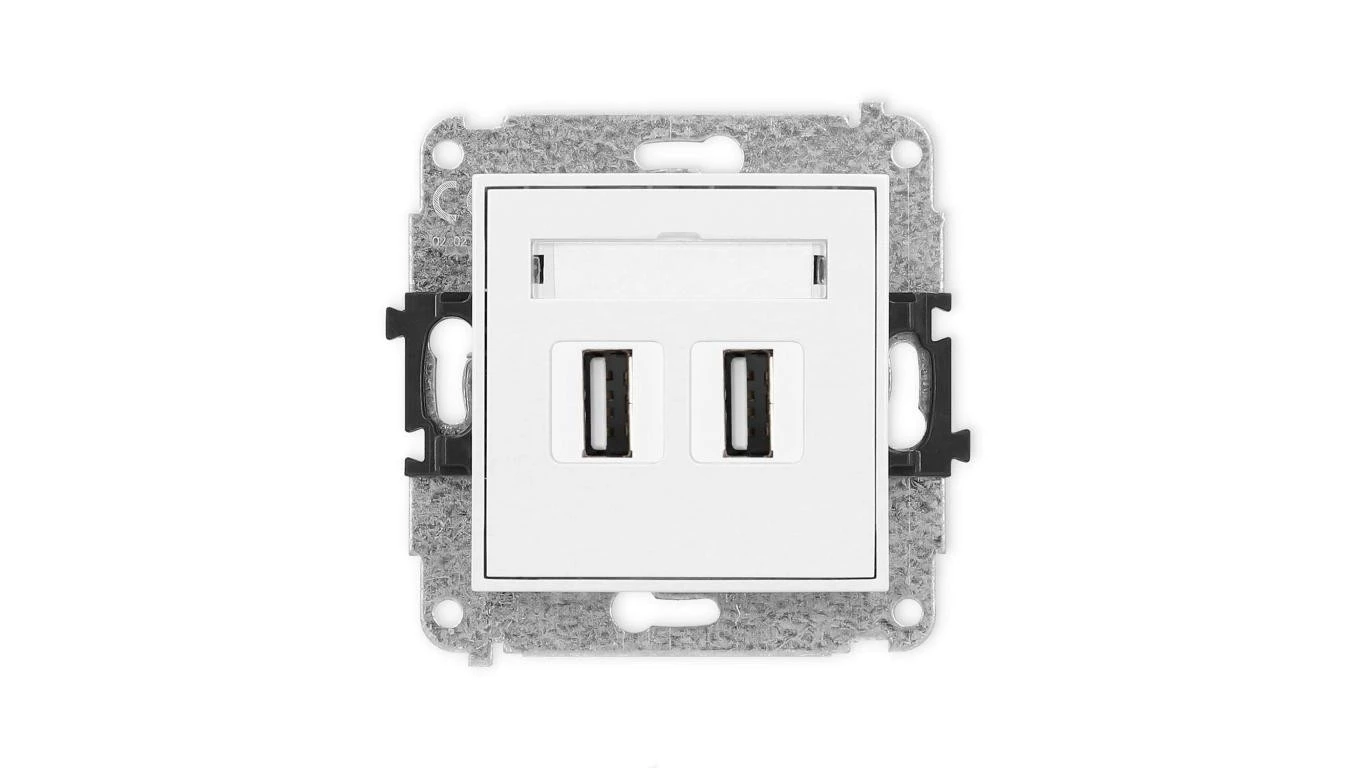 MINI Mechanizm gniazda podwójnego 2xUSB A-A 2.0 biały mat 25MGUSB-2