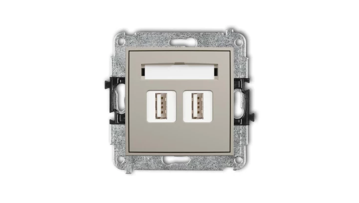 MINI Mechanizm gniazda podwójnego 2xUSB A-A 2.0 taupe 60MGUSB-2