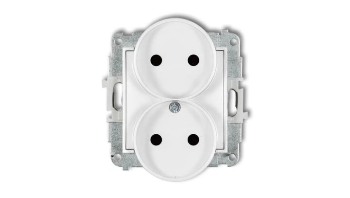 MINI Mechanizm gniazda podwójnego do ramki bez uziemienia 2x2P (przesłony torów prądowych) biały mat 25MGPR-2p