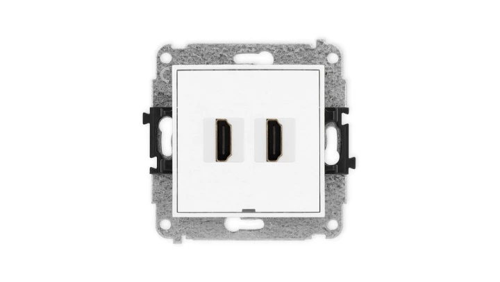 MINI Mechanizm gniazda podwójnego HDMI 2.0, bez pola opisowego biały mat 25MHDMIBO-4
