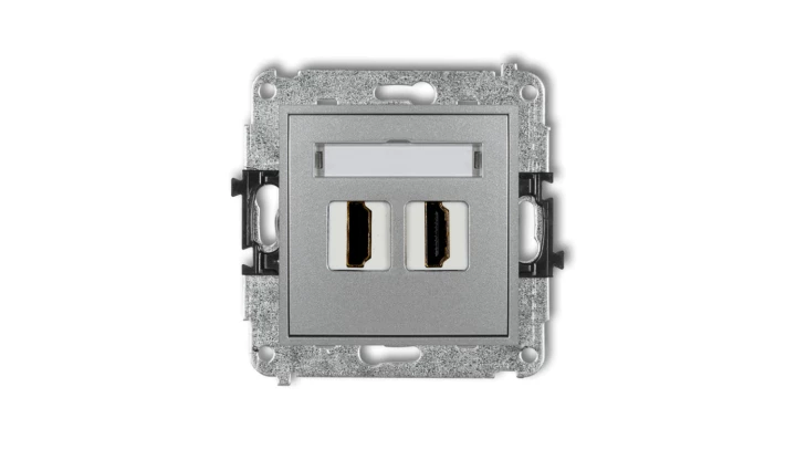 MINI Mechanizm gniazda podwójnego HDMI 2.0 srebrny metalik 7MHDMI-4