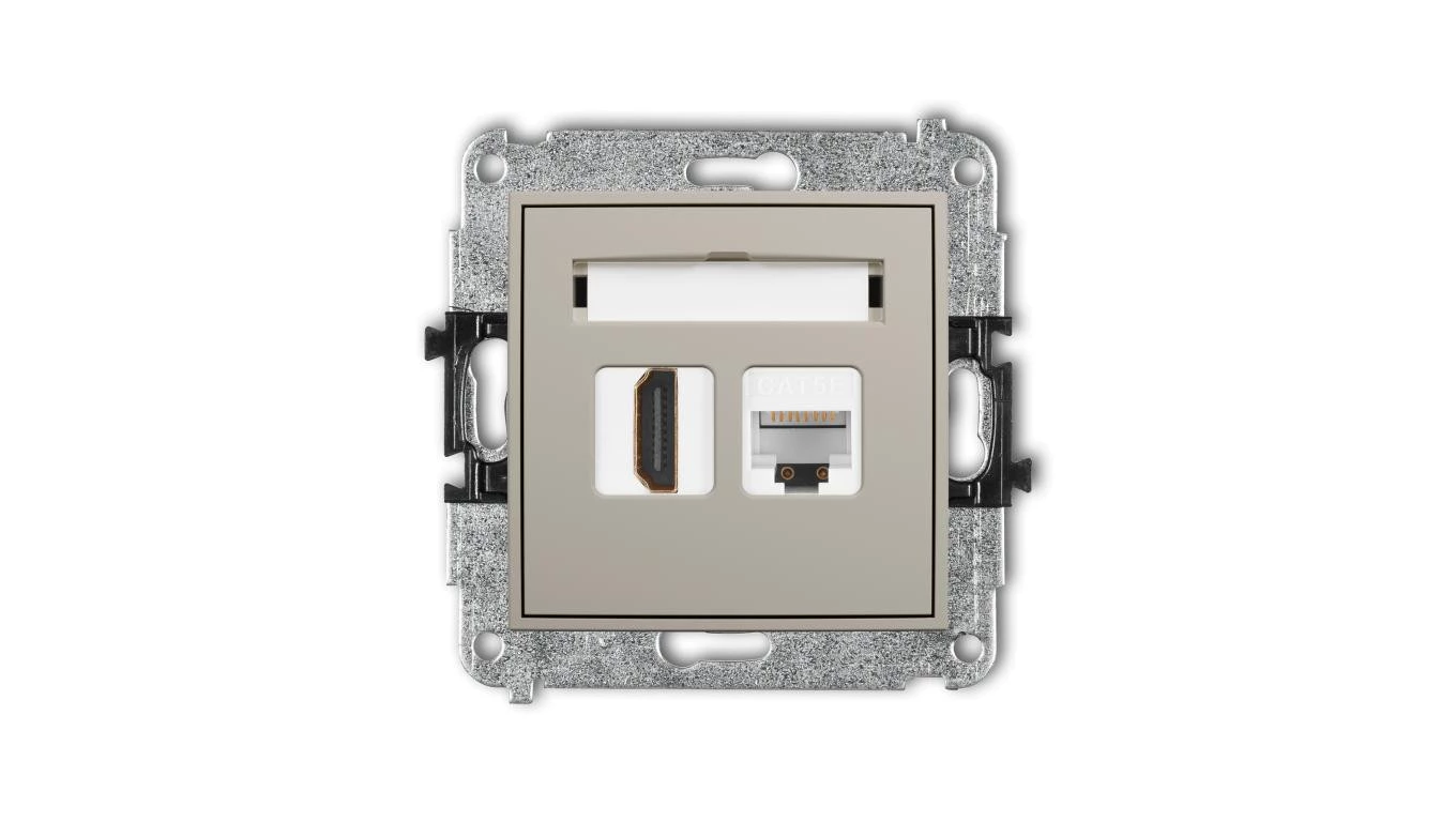 MINI Mechanizm gniazda pojedynczego HDMI 2.0, 4K + gniazda komp. poj. 1xRJ45, kat. 5e, 8-stykowy taupe 60MGHK