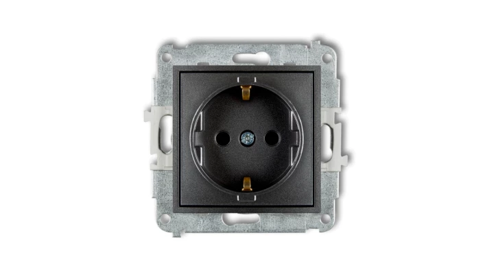 MINI Mechanizm gniazda pojedynczego z uziemieniem SCHUKO 2P+Z (przesłony torów prądowych) grafitowy 11MGP-1sp
