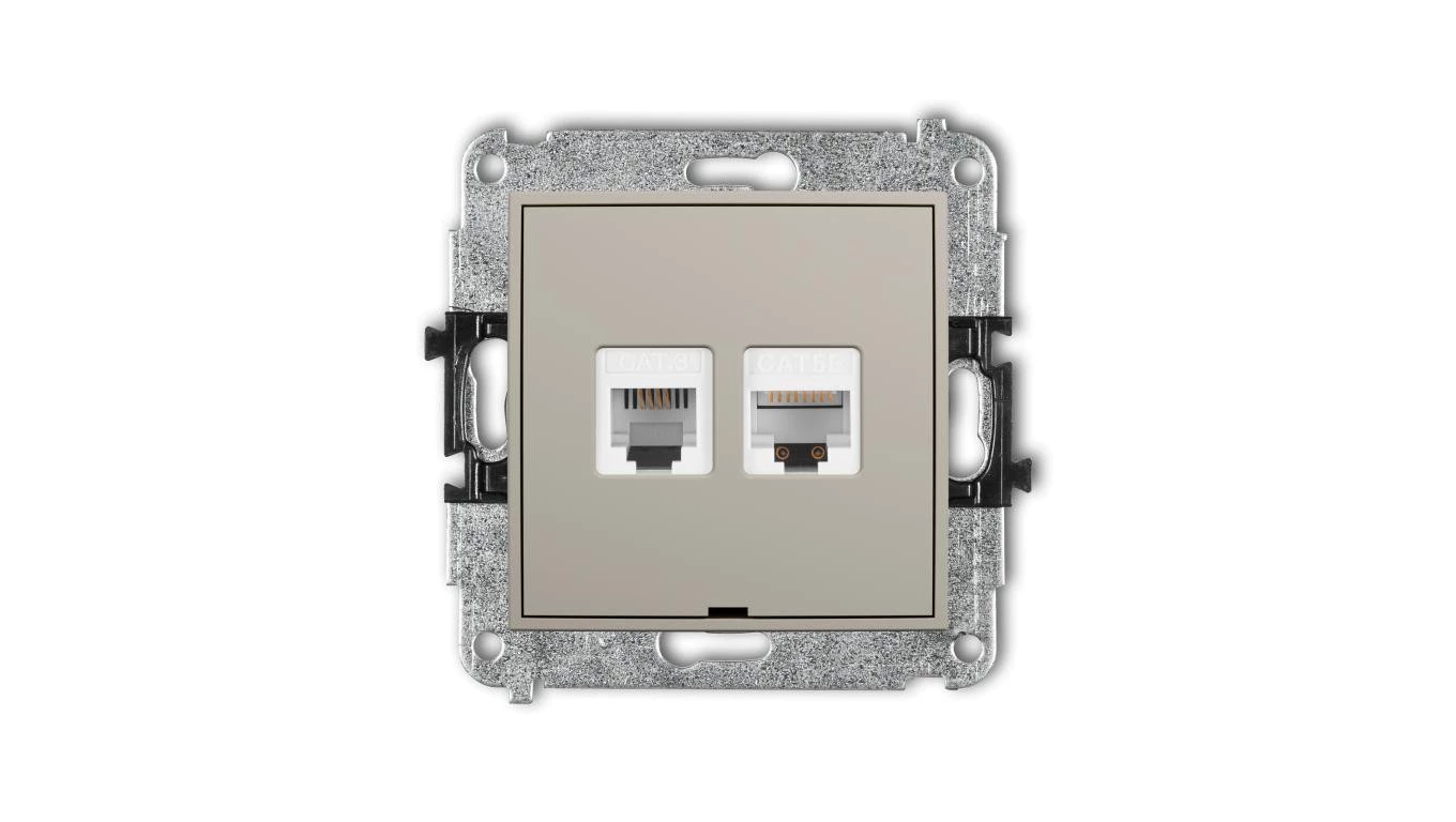 MINI Mechanizm gniazda telefonicznego 1xRJ11 + komp. poj. 1xRJ45, kat. 5e, 8-stykowy, beznarzędziowe, bez opisu taupe 60MGTKBO