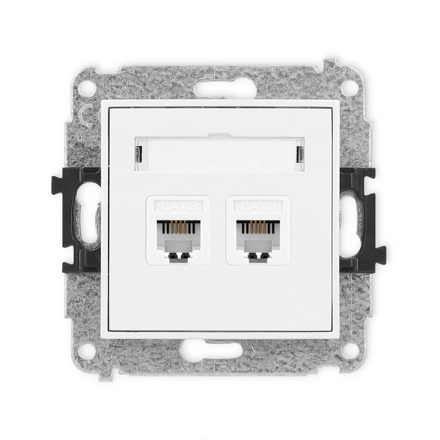 MINI Mechanizm gniazda telefonicznego podwójnego 2xRJ11, 4-stykowy, beznarzędziowe biały mat 25MGT-2