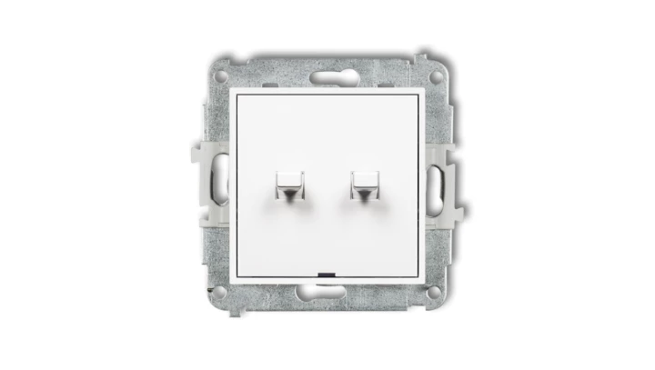 MINI Mechanizm łącznika jednobiegunowego ze schodowym w stylu amerykańskim (dwa klawisze bez piktogramów,wspólne zasilanie) biał