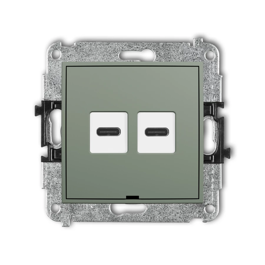MINI Mechanizm ładowarki USB podwójnej 2xUSB C, 20W max., bez pola opisowego szałwiowy 61MCUSBBO-7