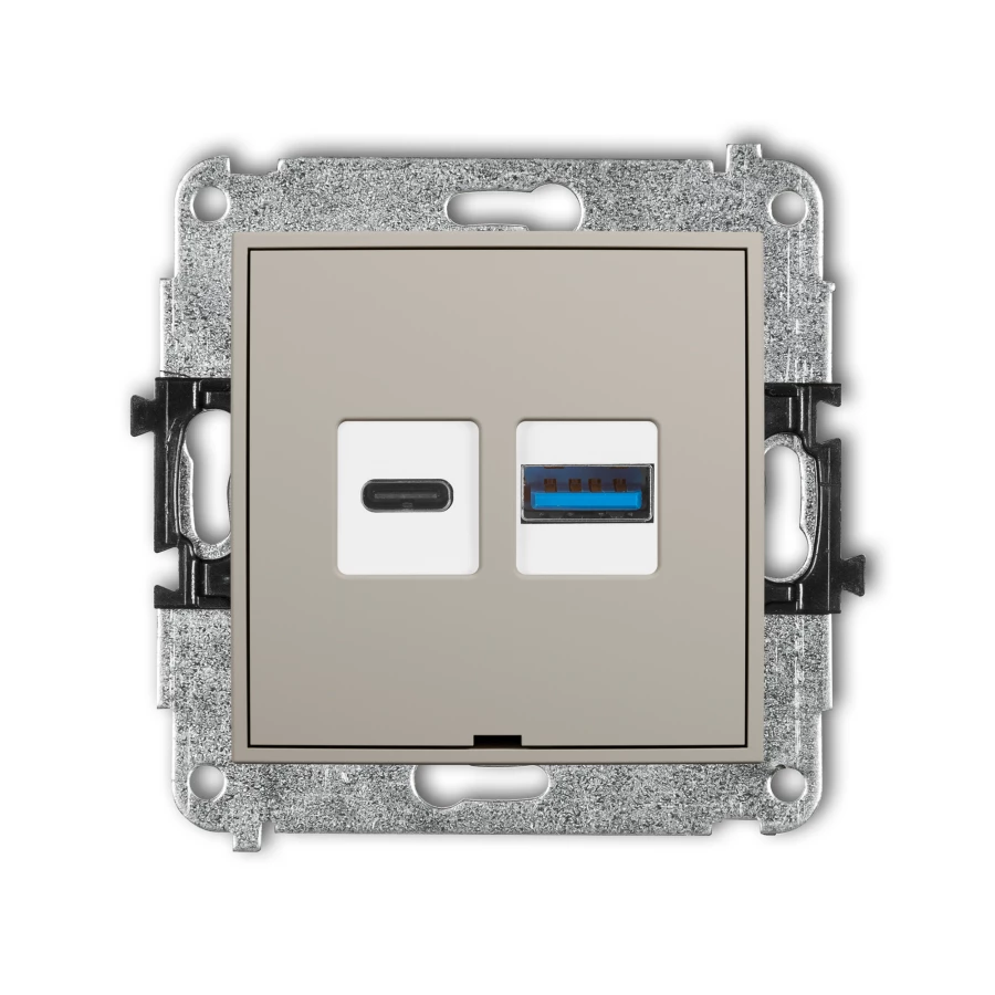 MINI Mechanizm ładowarki USB podwójnej USB C + USB A, 20W max., bez pola opisowego taupe 60MCUSBBO-8