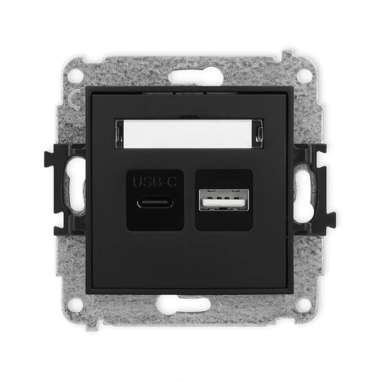 MINI Mechanizm ładowarki USB podwójnej USB C + USB A, 20W max., czarny mat 12MCUSB-8