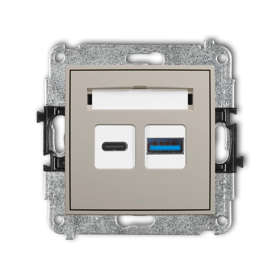MINI Mechanizm ładowarki USB podwójnej USB C + USB A, 20W max. taupe 60MCUSB-8