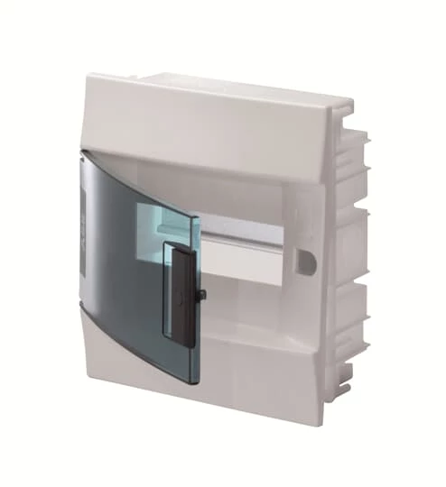 Rozdzielnica MISTRAL41F podtynkowa drzwi przeźroczyste 8 modułowa z listwą N+PE o numerze katalogowym 1SLM004101A1202 w kategorii Tworzywowe podtynkowe, Rozdzielnice i obudowy. Produkt wyprodukowany przez markę ABB, seria MISTRAL.