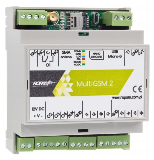 Moduł komunikacyjny GSM/GPRS, 12VDC, 8 wejść, 4 wyjścia, tel x 1000, SMS/CLIP/DTMF/E-MAIL DIN 4P, MultiGSM-D4M 2