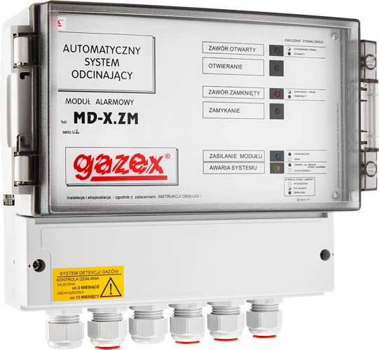 Moduł sterujący zaworami ZM, MD zasilanie 230V, TYLKO do sterowania zaworami ZM o numerze katalogowym MD-X.ZM w kategorii Moduły sterujące i pomiarowe do detektorów gazów stacjonarnych, Detektory gazów. Produkt wyprodukowany przez markę GAZEX, seria MD.