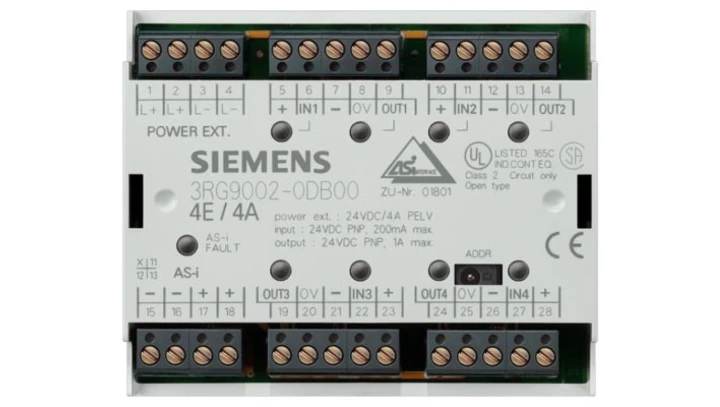 Moduł wejść cyfrowych 4 wejścia 200mA PNP 24V DC AS-INTERFACE 3RG9004-0DA00