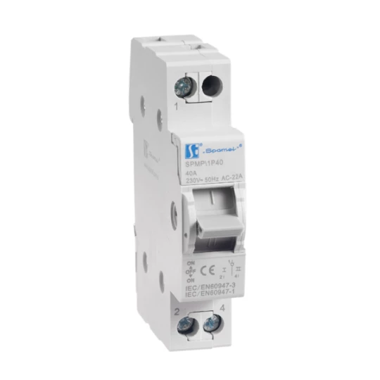 Przełącznik modułowy sieć-agregat 1P 40A SPMP\1P40 o numerze katalogowym SPMP\1P40 w kategorii Wyłączniki i rozłączniki modułowe, Wyłączniki, rozłączniki. Produkt wyprodukowany przez markę SPAMEL, seria SPMP.