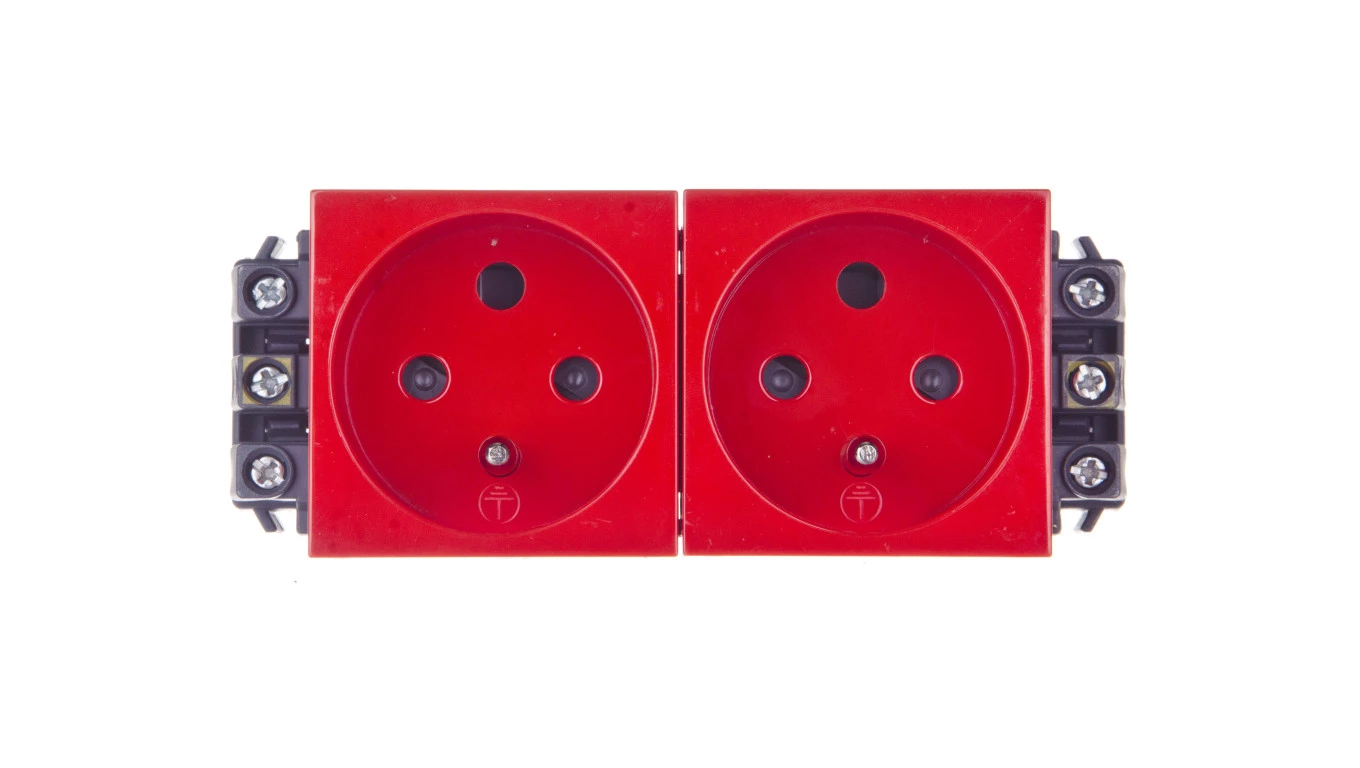 MOSAIC Gniazdo podwójne z/u 16A z blokadą czerwone 077342