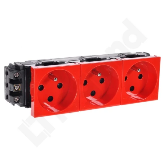 MOSAIC Gniazdo potrójne z/u z blokadą czerwone 077343