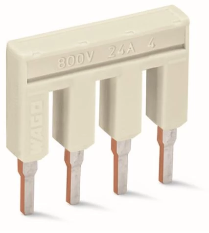 Mostek grzebieniowy z izolacją 4-torowy prąd nominalny 25 A jasnoszary o numerze katalogowym 2002-404 w kategorii Zwieracze do złączek sprężynowych, Złączki listwowe sprężynowe. Produkt wyprodukowany przez markę WAGO, seria TOPJOB® S.
