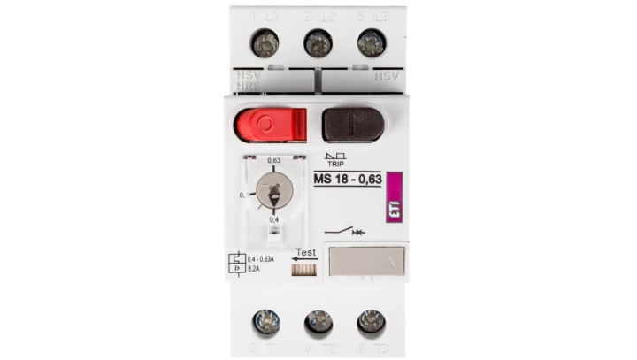 Wyłącznik silnikowy MS18-0,63A o numerze katalogowym 004600343 w kategorii Wyłączniki silnikowe, Sterowanie i zabezpieczenie silników. Produkt wyprodukowany przez markę ETI.