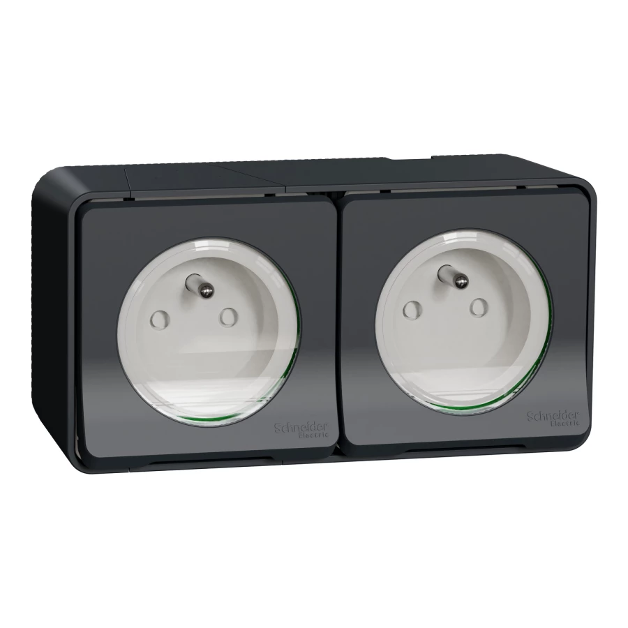 Mureva gniazdo zasilające z uziemieniem 2P+PE podwójne kolor antracytowy o numerze katalogowym MUR36028 w kategorii Gniazda podtynkowe, Gniazda instalacyjne. Produkt wyprodukowany przez markę SCHNEIDER ELECTRIC, seria MUREWA.