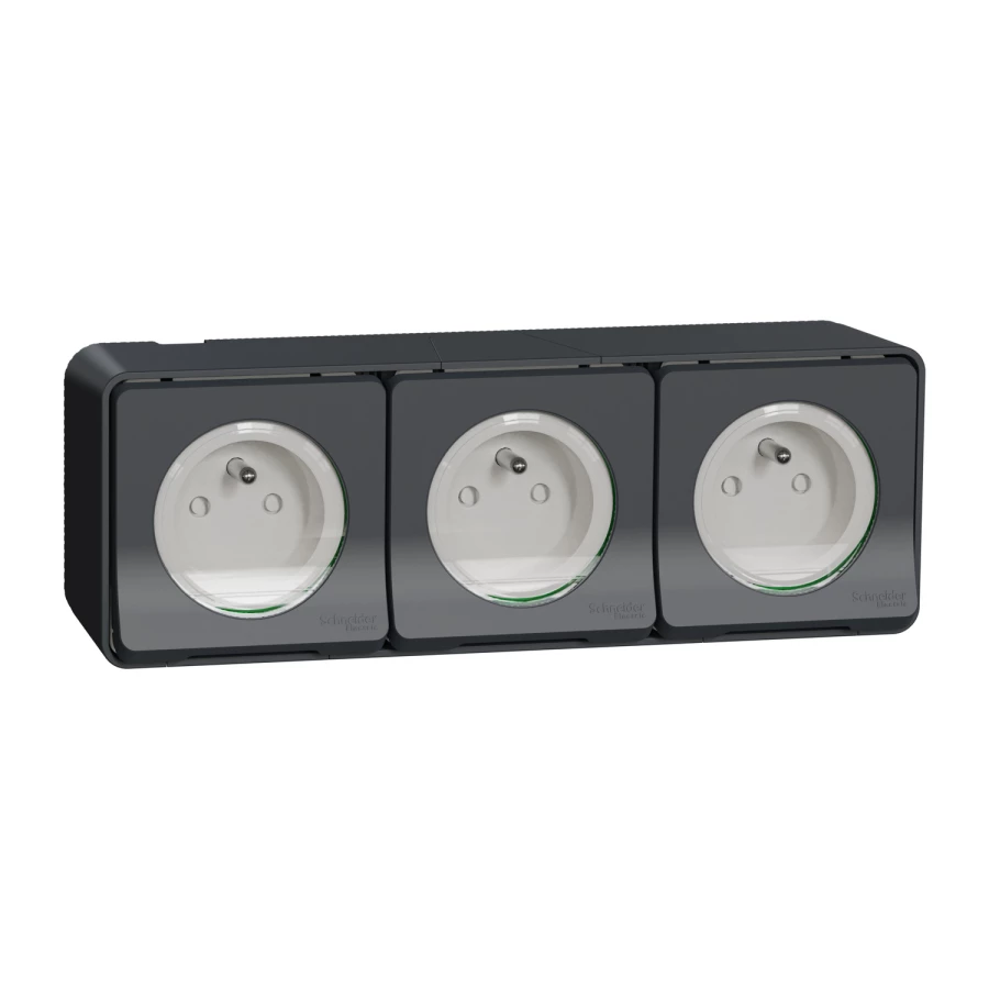 Mureva gniazdo zasilające z uziemieniem 2P+PE potrójne kolor antracytowy o numerze katalogowym MUR36037 w kategorii Gniazda podtynkowe, Gniazda instalacyjne. Produkt wyprodukowany przez markę SCHNEIDER ELECTRIC, seria MUREWA.