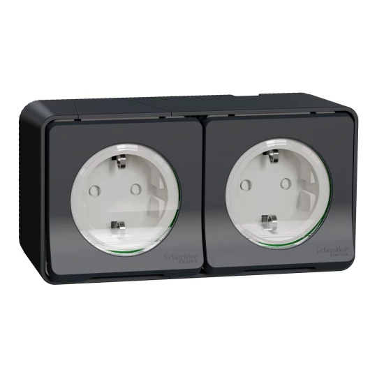 Mureva gniazdo zasilające z uziemieniem Schuko 2P+PE podwójne kolor antracytowy o numerze katalogowym MUR36029 w kategorii Gniazda podtynkowe, Gniazda instalacyjne. Produkt wyprodukowany przez markę SCHNEIDER ELECTRIC, seria MUREWA.