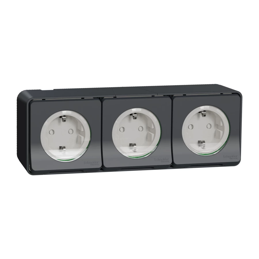 Mureva gniazdo zasilające z uziemieniem Schuko 2P+PE potrójne kolor antracytowy o numerze katalogowym MUR36038 w kategorii Gniazda podtynkowe, Gniazda instalacyjne. Produkt wyprodukowany przez markę SCHNEIDER ELECTRIC, seria MUREWA.