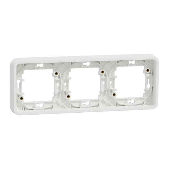 Mureva podstawa podtynkowa trzykrotna pozioma kolor biały o numerze katalogowym MUR39109 w kategorii Puszki natynkowe, Puszki instalacyjne. Produkt wyprodukowany przez markę SCHNEIDER ELECTRIC, seria MUREWA.
