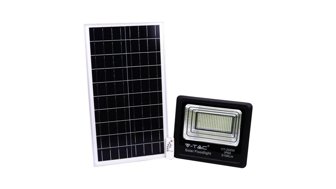 Projektor LED Solarny V-TAC 40W Czarny IP65, Pilot, Timer VT-200W 4000K 3100lm o numerze katalogowym 8577 w kategorii Naświetlacze LED, Oprawy zewnętrzne LED. Produkt wyprodukowany przez markę V-TAC.