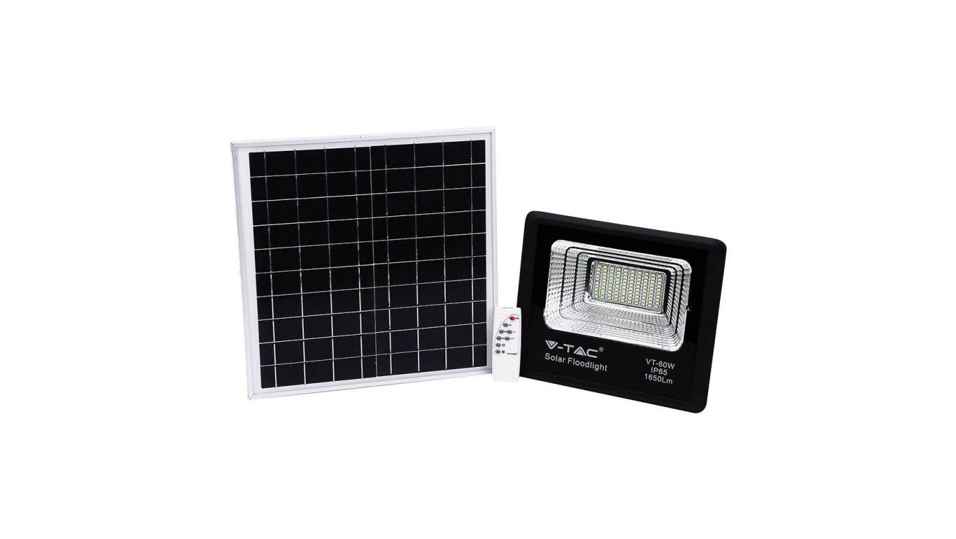 Naświetlacz LED z panelem solarnym 20W 1650lm 4000K 10.000mAh IP65 VT-60W o numerze katalogowym 8575 w kategorii Naświetlacze LED, Oprawy zewnętrzne LED. Produkt wyprodukowany przez markę V-TAC.