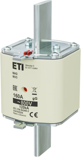 Wkładka topikowa zwłoczna - 800V - KOMBI NH3 gG 160A/800V o numerze katalogowym   004184524 w kategorii Wkładki bezpiecznikowe NH>Wkładki bezpiecznikowe NH3. Produkt wyprodukowany przez markę ETI.