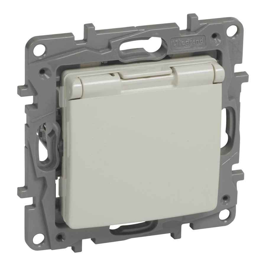 NILOE 2 MODUŁ KREM GNIAZDO 1X Z/U Z KLAPKĄ IP44 ZACISKI ŚRUBOWE 16A 250V