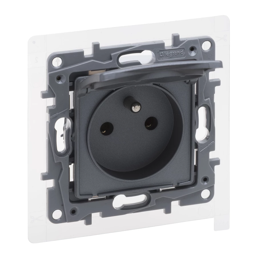 NILOE SELECTION MODUŁ STAL GNIAZDO 1X Z/U Z KLAPKĄ IP44 ZACISKI SPRĘŻYNOWE 16A 250V