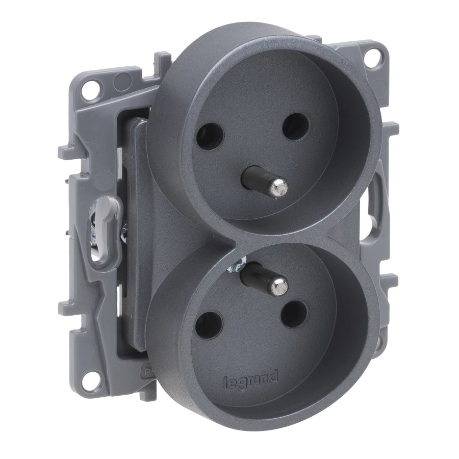 NILOE SELECTION MODUŁ STAL GNIAZDO 2X Z/U ZACISKI ŚRUBOWE 16A 250V