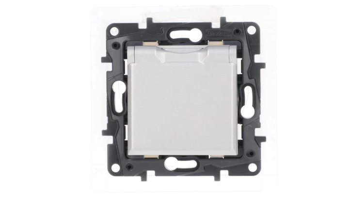 Gniazdo zasilające pojedyncze z uziemieniem IP44, zaciski automatyczne, z przesłoną- kolor aluminium, NILOE STEP o numerze katalogowym 863336 w kategorii Gniazda podtynkowe, Gniazda instalacyjne. Produkt wyprodukowany przez markę LEGRAND, seria NSTEP.