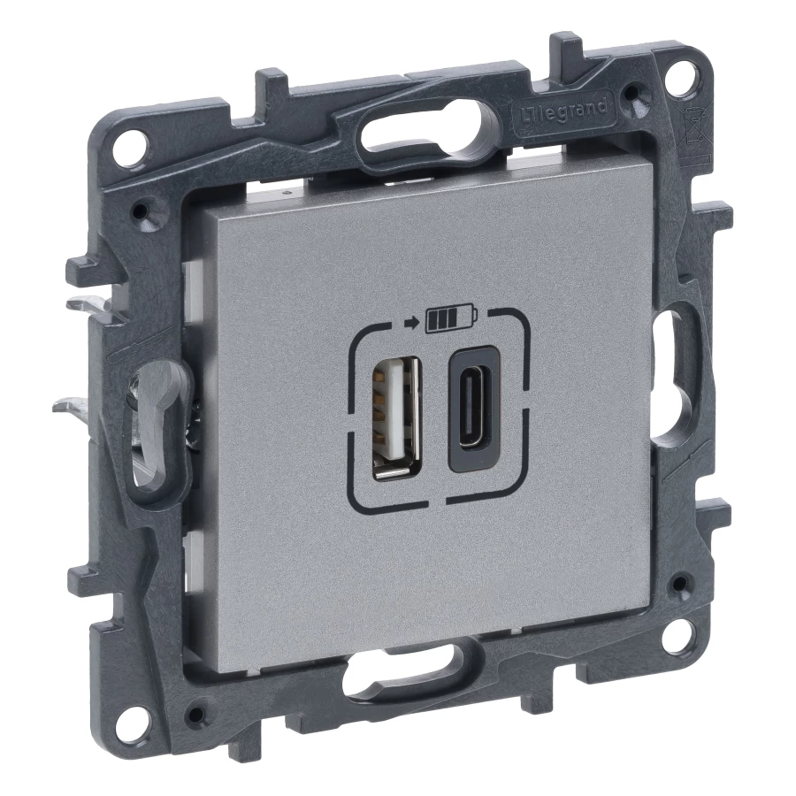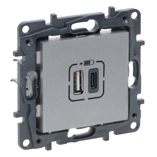 NILOE STEP MODUŁ ALUMINIUM GNIAZDO ŁADOWARKA USB TYP A+C 3A 5V