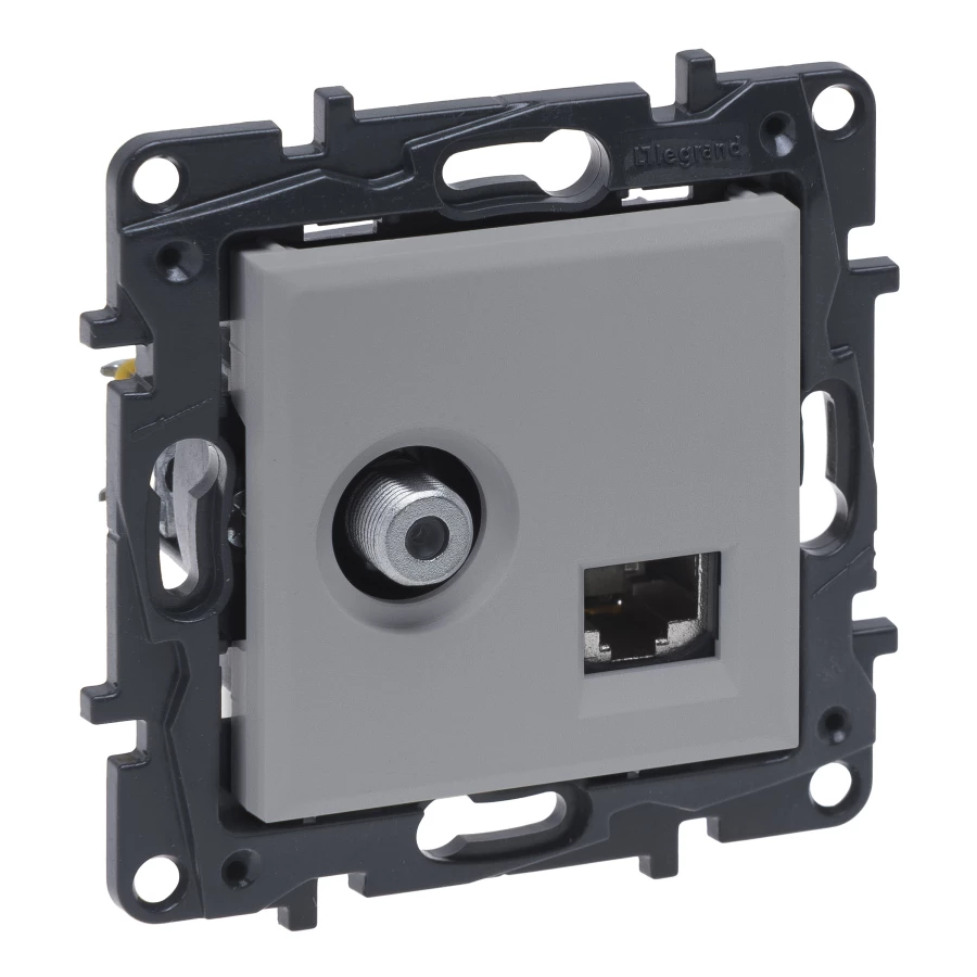 NILOE STEP MODUŁ ALUMINIUM GNIAZDO MULTIMEDIALNE TV TYP "F" KOŃCOWE GWIAZDA 1.5DB + 1X UAE CAT.6 UTP