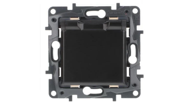 NILOE STEP MODUŁ CZARNY GNIAZDO 1X Z/U Z KLAPKĄ IP44 Z PRZESŁONAMI ZACISKI SPRĘŻYNOWE 16A 250V