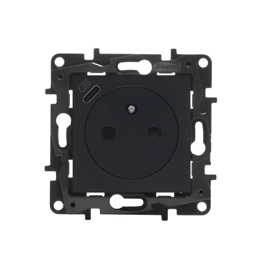 NILOE STEP MODUŁ CZARNY GNIAZDO 1X Z/U Z PRZESŁONAMI ZACISKI SPRĘŻYNOWE+ ŁADOWARKA USB TYP C 1.5A
