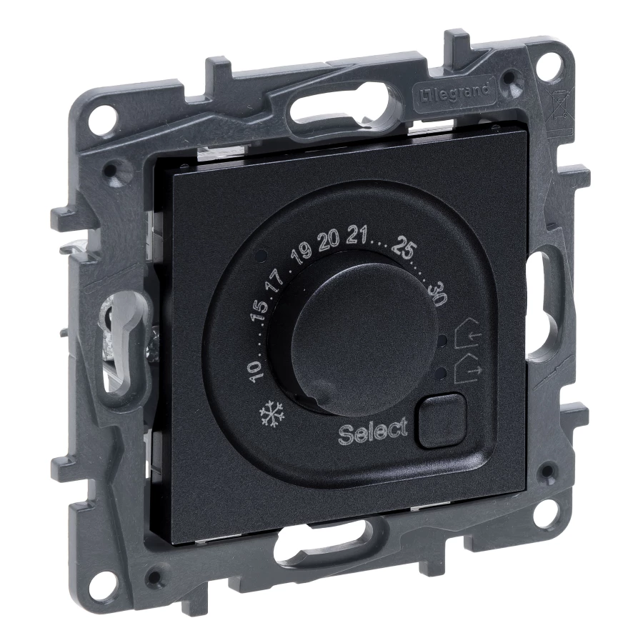 NILOE STEP MODUŁ CZARNY TERMOSTAT POKOJOWY 8/2A 1Z ZACISKI ŚRUBOWE 250V