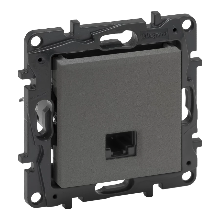 Simon 54 Gniazdo komputerowe pojedyncze RJ45 kat.6 ekranowane z przesłoną antracyt D61E.01/48