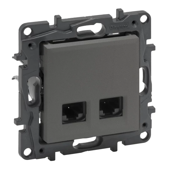 Simon 54 Gniazdo komputerowe podwójne 2xRJ45 kat.6 z przesłoną antracyt D62.01/48