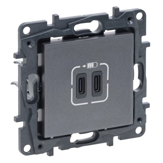 NILOE STEP MODUŁ STAL GNIAZDO ŁADOWARKA 2X USB TYP C 3A 5V 15W ZACISKI ŚRUBOWE