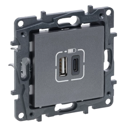 NILOE STEP MODUŁ STAL GNIAZDO ŁADOWARKA USB TYP A+C 3A 5V