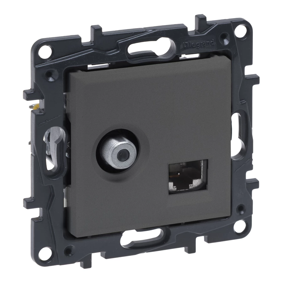 NILOE STEP MODUŁ STAL GNIAZDO MULTIMEDIALNE TV TYP "F" KOŃCOWE GWIAZDA 1.5DB + 1X UAE CAT.6 UTP