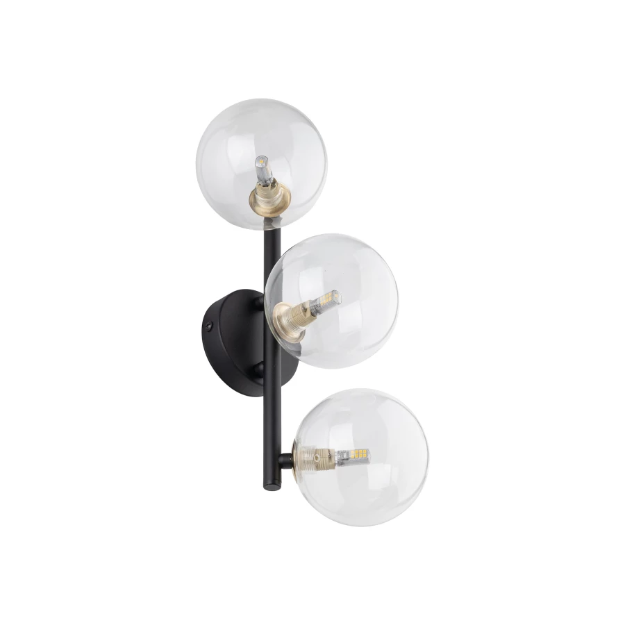 NILOS CZARNY ZŁOTY TRANSPARENTNY OPRAWA ŚCIENNA KINKIET 3 G9/ 8W STAL LAKIEROWANA STAL METALIZOWANA